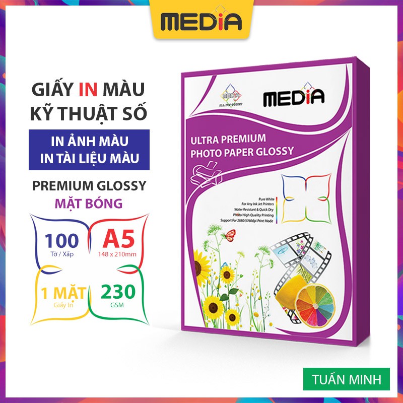 Giới thiệu Giấy In Ảnh Media 1 Mặt Bóng A5 230gsm 100 Tờ