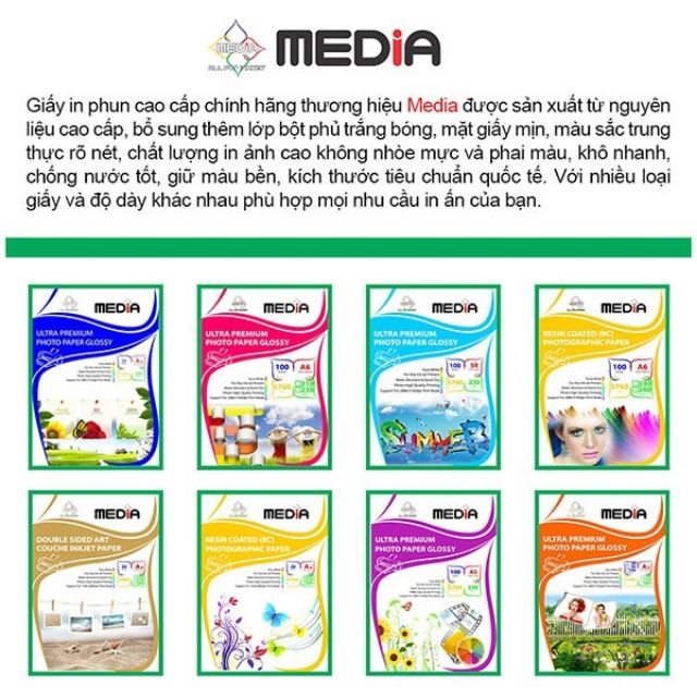Giới thiệu Giấy in ảnh Media 2 mặt bóng A4 160gsm 50 tờ/ xấp