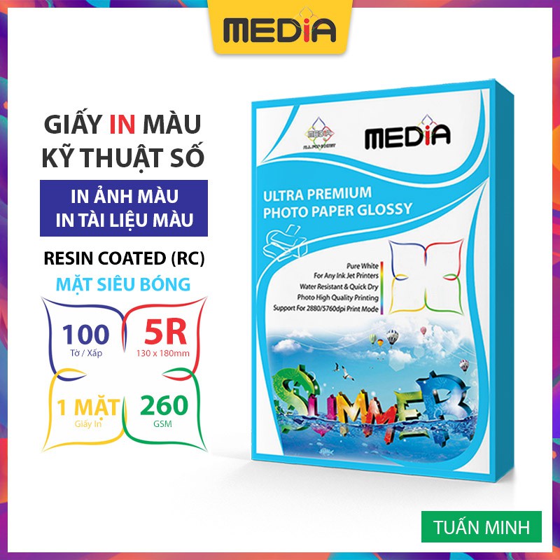 Giới thiệu Giấy In Ảnh Media RC 1 Mặt Siêu Bóng 5R 260gsm 100 Tờ