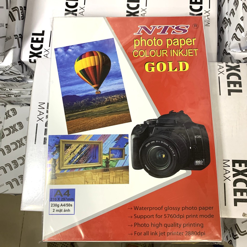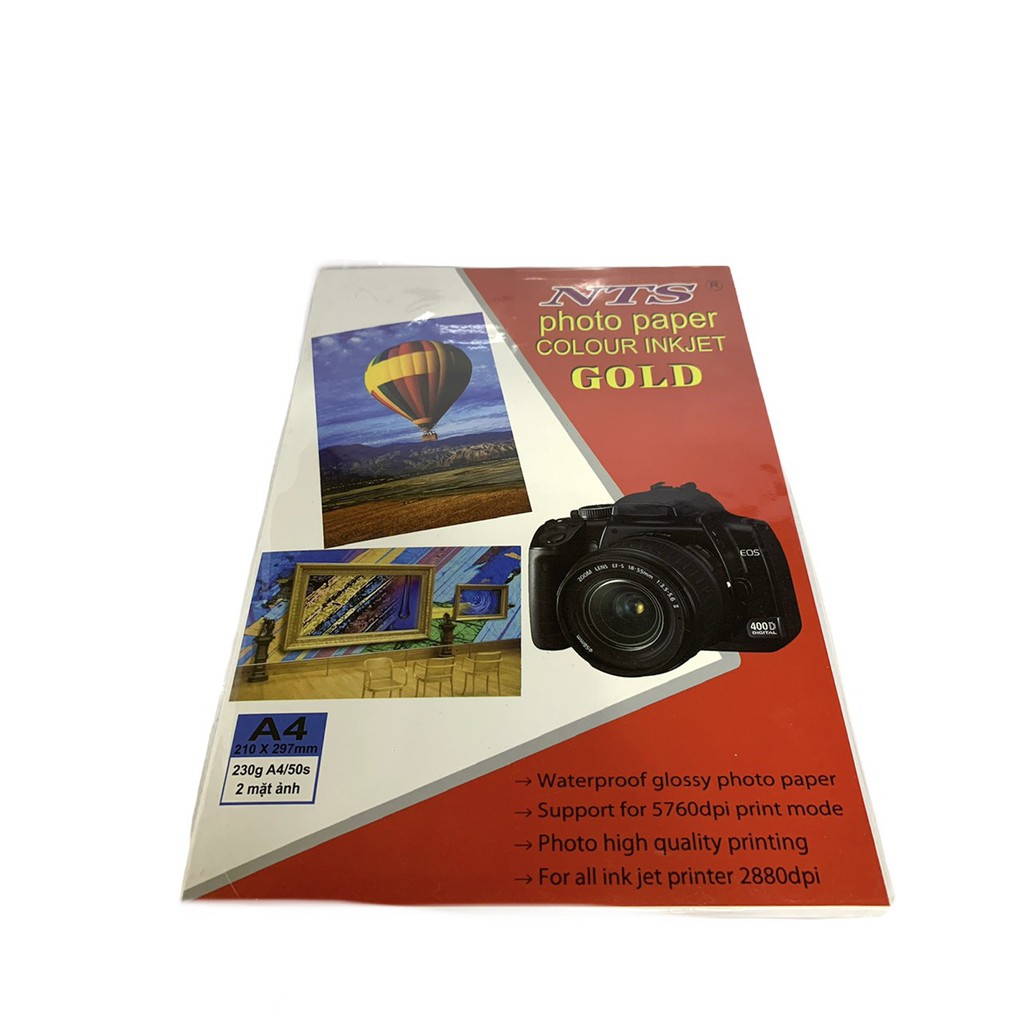 Giấy in ảnh NTS A4 2 mặt 230gsm 2 mặt bóng 50 tờ/xấpĐịnh lượng: 230gsm