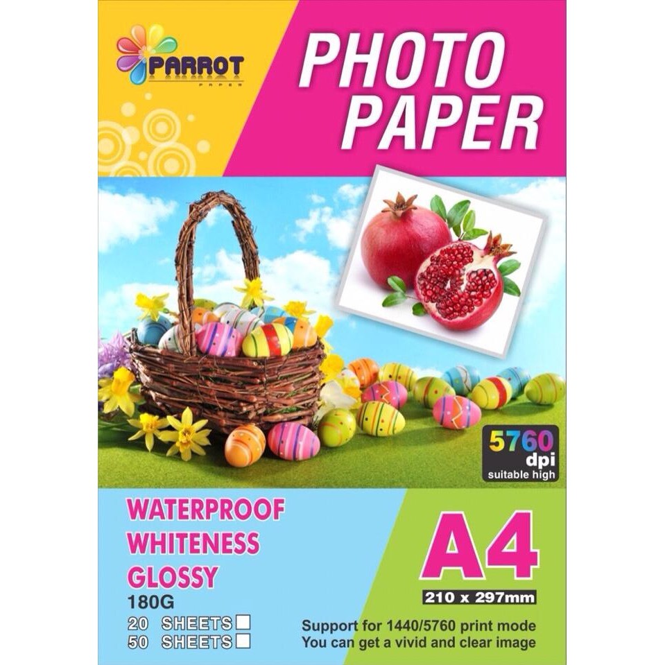 ▀Giấy in PARROT A4 1 mặt 50 tờ/xấp▀☛ Lựa chọn giấy in ảnh phụ thuộc rất nhiều vào nhu cầu in ấn của bạn, bạn nên lưu ý đến việc test sản phẩm để có những chọn lựa thông minh, giấy in ảnh Parrot sẽ là một chọn lựa thông minh và thích hợp với nhiều nhu cầu in ấn từ cá nhân đến dịch vụ.