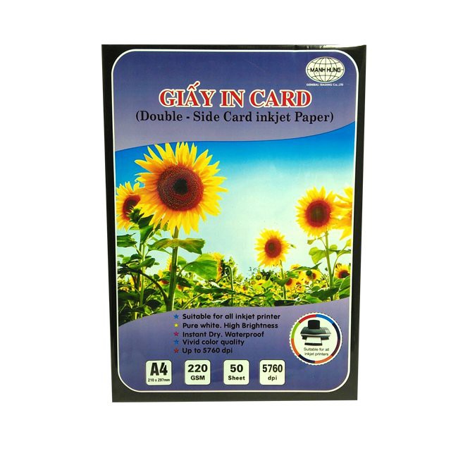 Văn Phòng Phẩm > Sổ & Giấy Các Loại > Giấy In || Giấy In Card Visit 2 Mặt Mạnh Hưng Định Lượng 220gsm (50 Tờ/Ram)Còn hàng