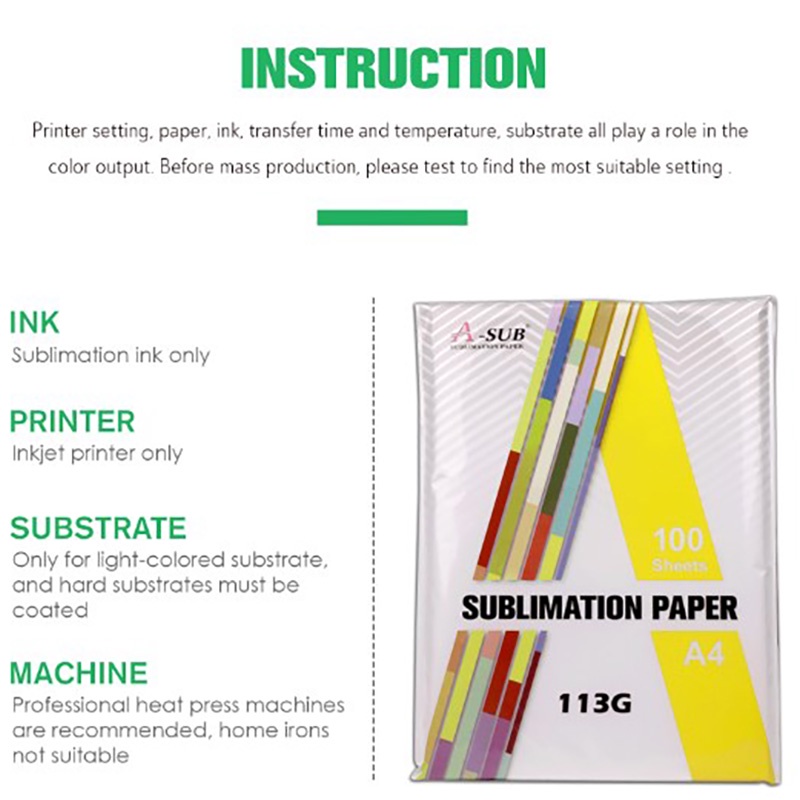 Văn Phòng Phẩm > Sổ & Giấy Các Loại > Giấy In || Giấy In Chuyển Nhiệt A-Sub Sublimation Transfer Paper, Khổ A4 Định Lượng 113gsm 100 Tờ, Dùng In Vật Liệu CứngCòn hàng