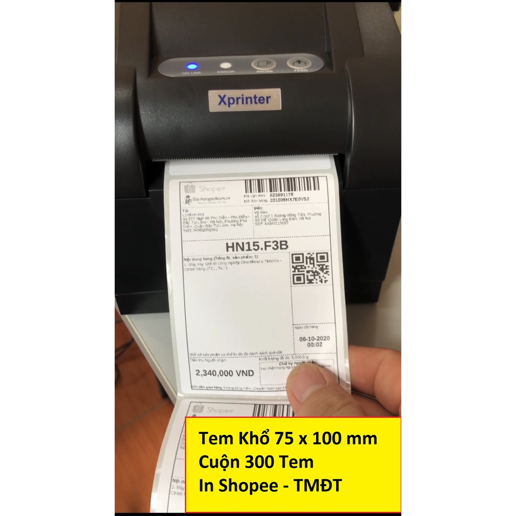 Giấy in đơn hàng shopee, đơn TMĐT A7 khổ 75x100mm ( 300 tem )
