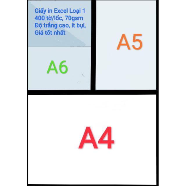 Giới thiệu Giấy in Excel A4, A5, A6, 1 lốc 400 tờ, 70gsm loại 1