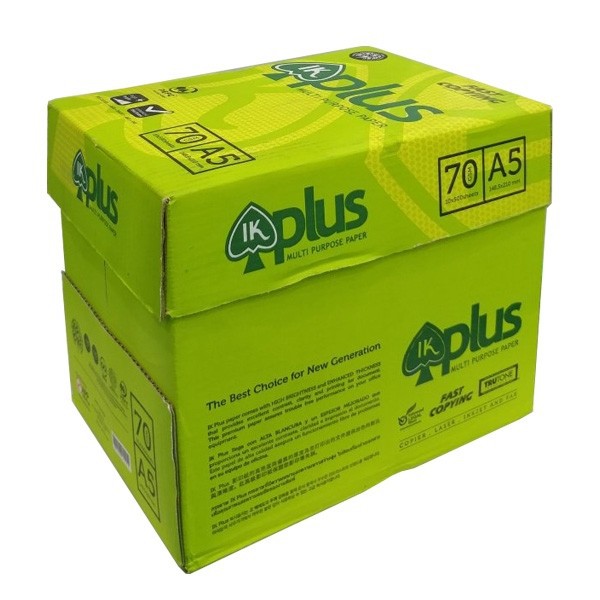 Giấy in, giấy photo A4 IK Plus ĐL 70/90gsm. Bằng cách làm cho giấy mềm và dày hơn, tránh được tình trạng kẹt giấy, phù hợp cho máy photocopy, máy in và sử dụng tại văn phòng tích hợp những tính năng sản xuất vượt trội và cải tiến để đảm bảo rằng tất cả những nguyên liệu thô được chuyển thành giấy có chất lượng cao và thân thiện với môi trường. Chính vì vậy mà giấy đã vượt qua rất nhiều thử thách về độ kẹt giấy với việc sao chép 60 trang giấy mỗi phút trong 24 giờ liên tục bằng một máy photo tốc độ cao mà không có hiện tượng kẹt giấy, phản ánh được đúng chất lượng hàng đầu