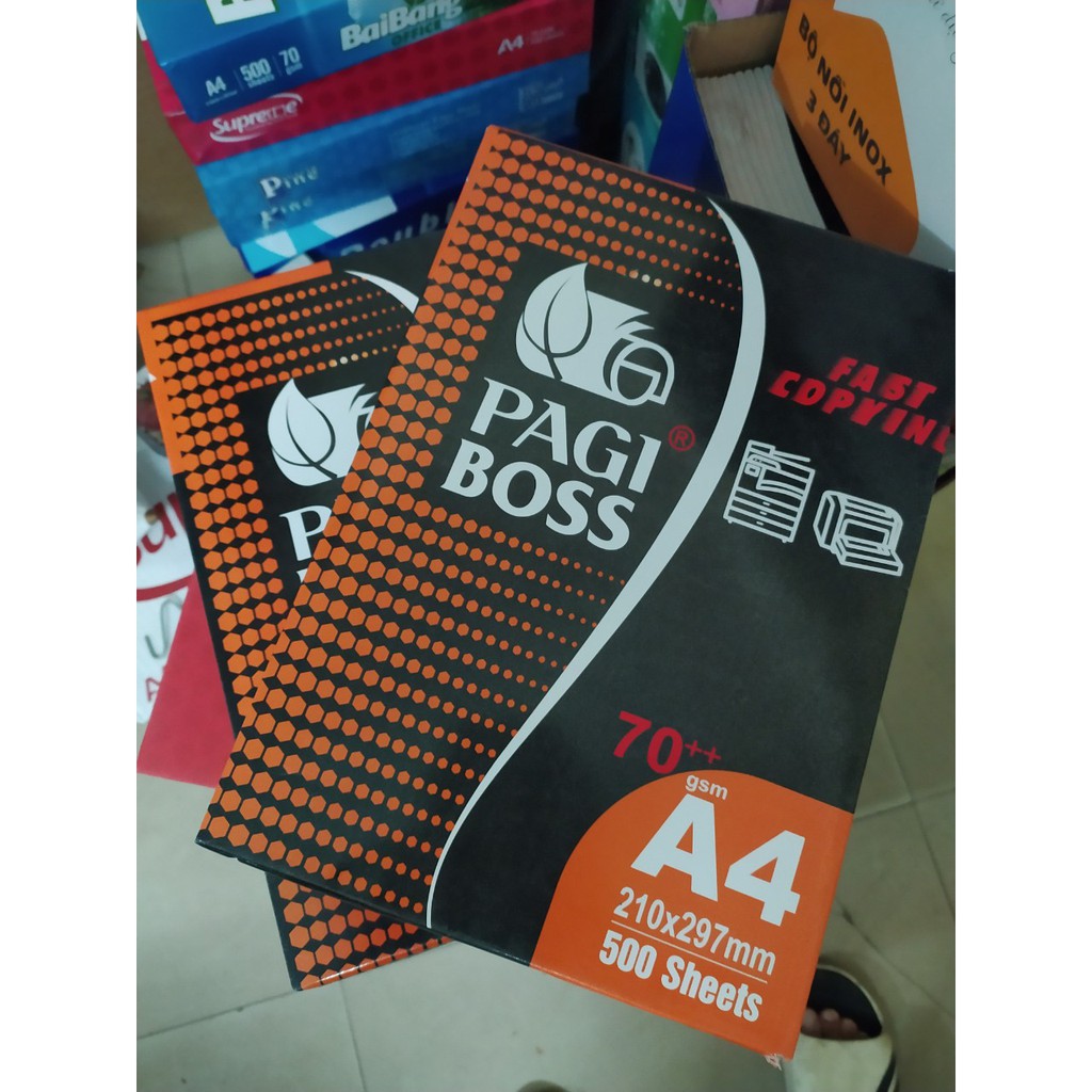 Giấy In🌸 Giấy Photo Pagi Boss A4 Vỏ Cam🌸DL 70++ g/m2,Độ trắng 95, 500 tờ/ram-Thích Hợp Với Tất Cả Các Loại Máy💕💕💕💕💕💕 Vanphongphambaoan chuyên cung cấp các mặt hàng Giấy in, Bìa màu, Bút, Sổ, File hồ sơ,.... GIÁ TỐT NHẤT mẫu mã đa dạng tới tay khách hàng. Hãy FOLLOW shop để nhận Voucher ưu đãi của shop với phương châm "Sự hài lòng của khách hàng là niềm vui của chúng tôi" 💕💕💕💕💕💕