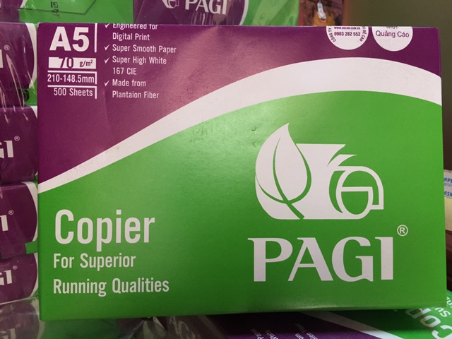 Giấy in khổ A5 thương hiệu PAGI và DOUBLE A