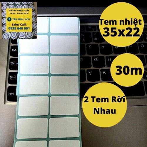 Máy tính & Laptop > Máy In & Máy Scan > Khác || Giấy in mã vạch 35x22mm 2 tem/ hàng. giấy nhiệt. 2000 tem/ cuộn (2 tem rời nhau)Còn hàng