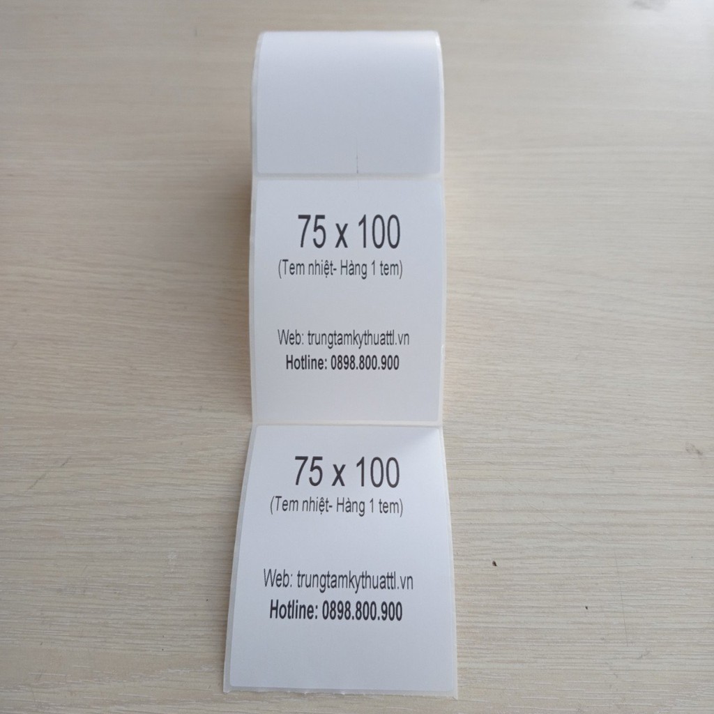 Sản phẩm Giấy In Tem, In Nhãn, Tem Dán khổ 75x100 mm - Decal 7.5x10 cm, chuyên in tem nhãn hộp, nhãn thùng carton, in tem logistic, tem vận chuyển, in đơn hàng cho các sàn thương mại, ... Keo dính chắc, độ nét cao, không kén máy in và an toàn với mọi loại đầu in.THÔNG TIN SẢN PHẨM