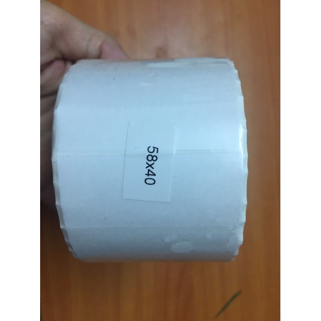Kích thước 58 x 40mm x 30m hoặc có thể đặt kích thước theo yêu cầu.Dùng cho các máy in mã vạch nhiệt như XP350, Antech 3120, cân tính tiền siêu thị…
