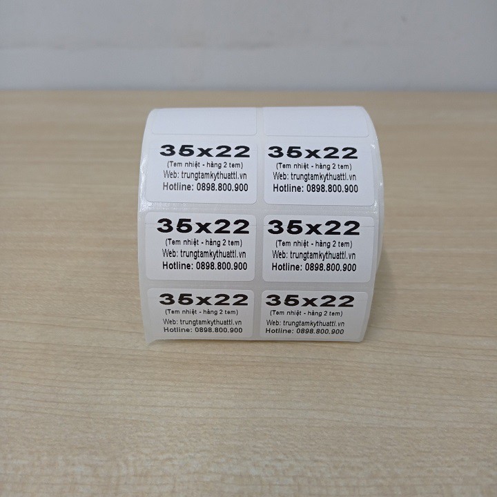 Sản phẩm giấy in nhiệt, in tem, in mã vạch khổ 2 tem 70x22mm, gồm 2 tem đơn 35x22mm một hàng.Chuyên sử dụng cho các máy in mã vạch, in tem nhiệt trực tiếp khổ 80mm (Xprinter XP-365B, 350B, 360B...) hoặc khổ 110mm (Xprinter 460B, 470B, DT108B, Shoptida, N41...)
