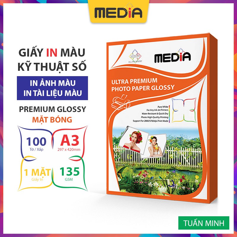 Giấy In Màu Media 1 Mặt Bóng A3 135gsm 100 Tờ