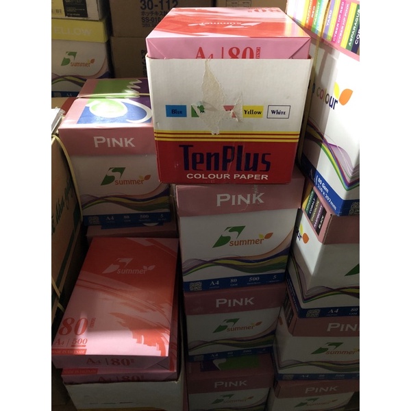- Giấy photo Tenplus, Summer với các màu:Xanh lá, Xanh biển, Hồng đậm, Hồng nhạt, Vàng đậm, Vàng nhạt