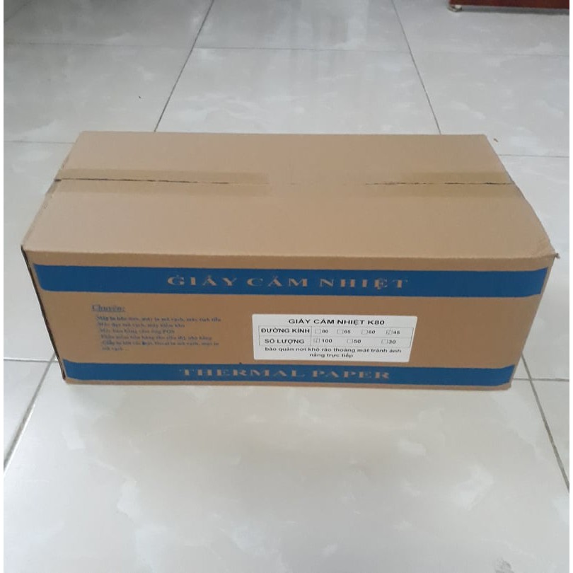 * Kích thước: Đường kính cuộn giấy: 45mm( Phi 45), khổ ngang cuộn giấy 80mm.