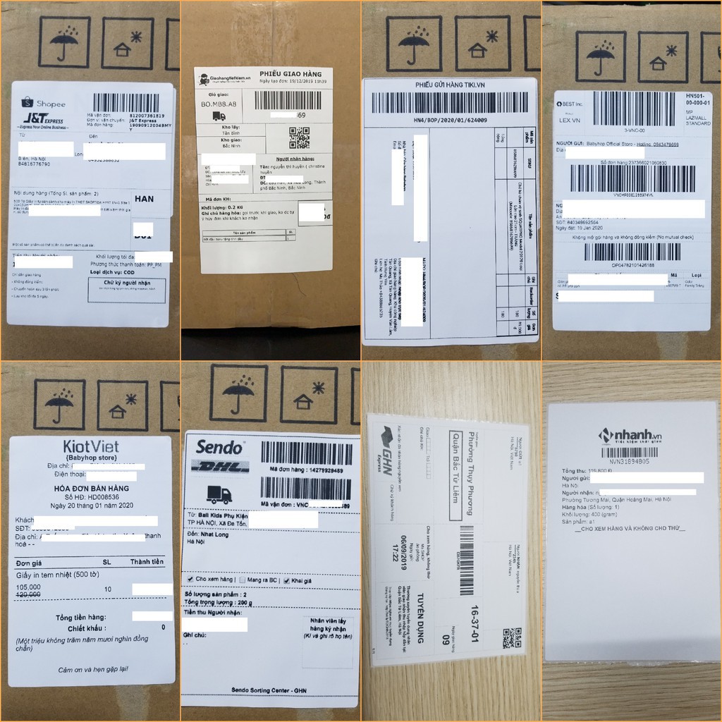 + Phiếu gửi của các đơn vị vận chuyển như GHTK, J&T, GHN, NINJA VAN, VTP,.....