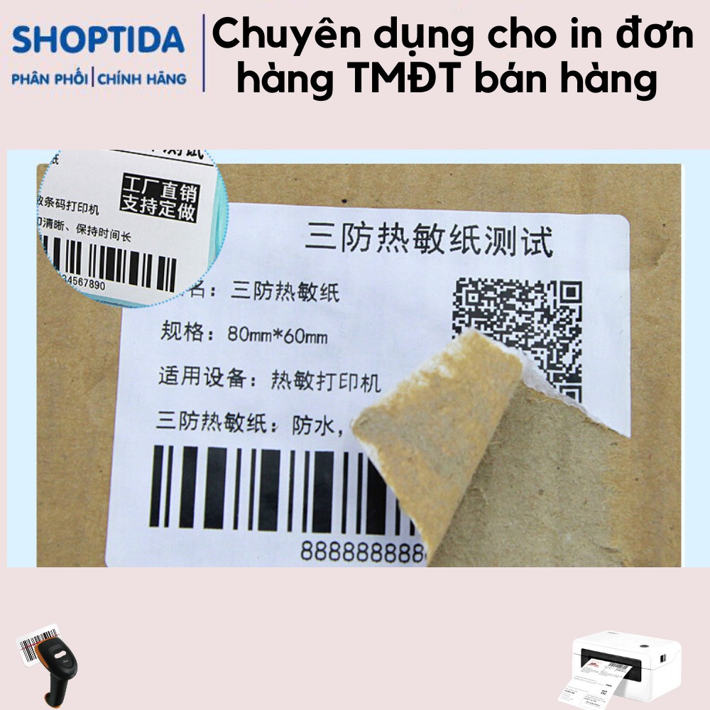 * Giấy in nhiệt của Shoptida cắt sẵn nét đứt, chia khổ sẵn in xong chỉ cần xé ra và dán.