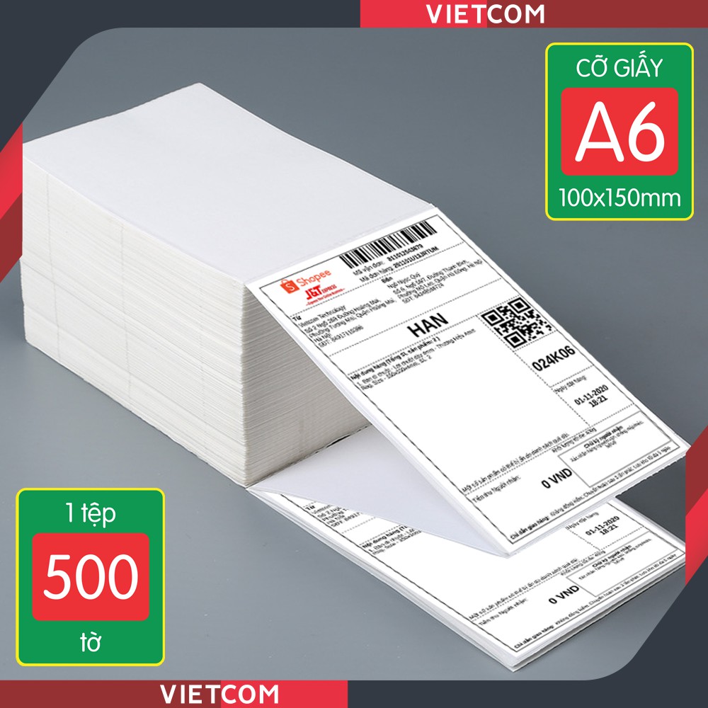 - Giấy in nhiệt của Vietcom chuyên dùng cho in các đơn hàng TMĐT, các bên vận chuyển, các phần mềm bán hàng, các file soạn thảo Word - Excel, có thể dùng làm tem phụ sản phẩm