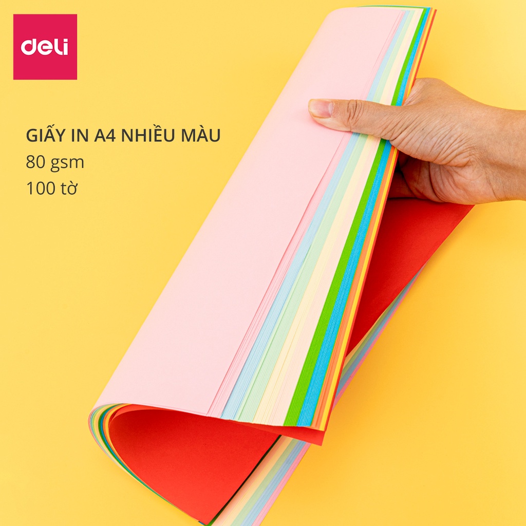 Văn Phòng Phẩm > Sổ & Giấy Các Loại > Giấy In || Giấy in nhiều màu khổ A4 Deli - Định lượng 80gsm - 100 trang/tệp - 2 tông màu pastel / sặc sỡ - 7788Còn hàng