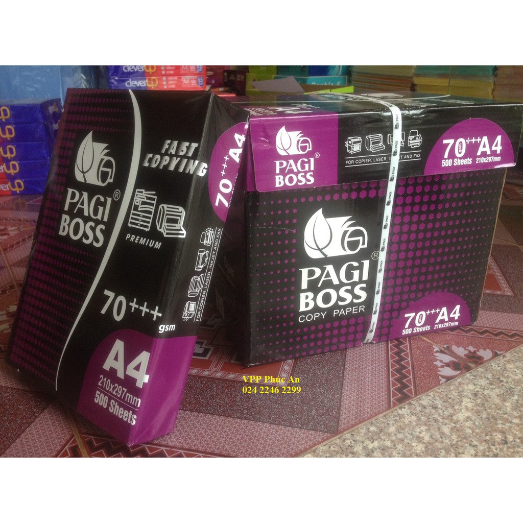 - Giấy A4 Pagi Boss 70 +++ là một sản phẩm cải tiến mới của thương hiệu giấy nổi tiếng Pagi- Với định lượng 70 +++ nên rất dày dặn