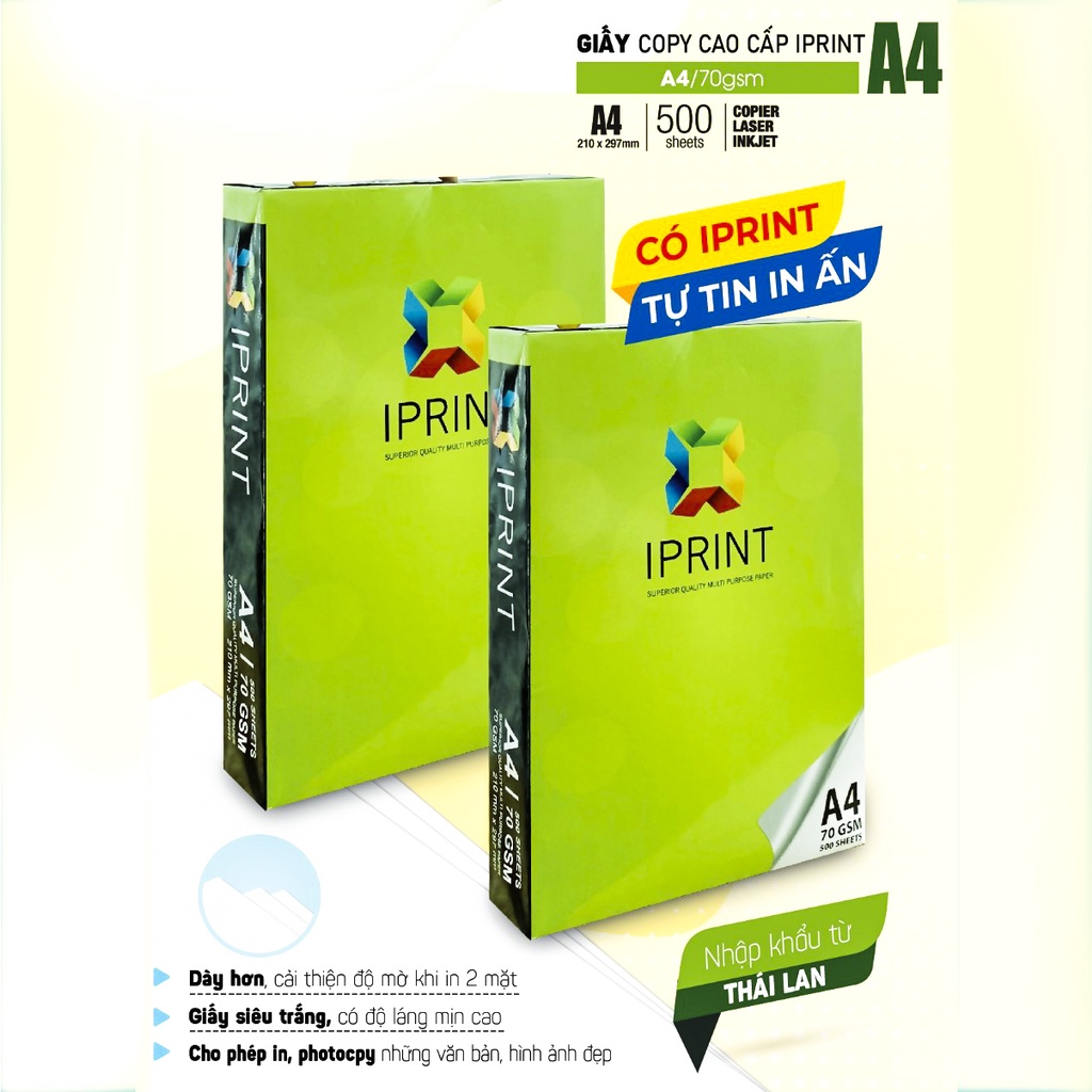 Giới thiệu GIấy in Photo A4 IPRINT Thái Lan 70GSM 500 Tờ