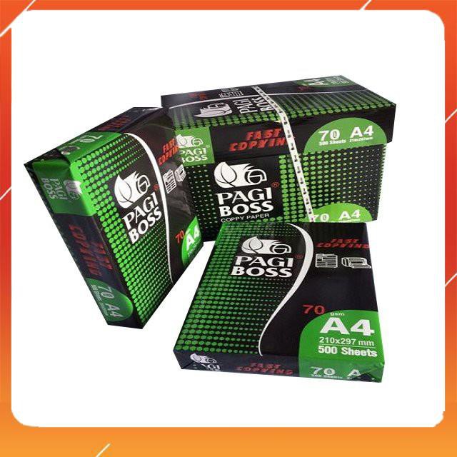 - PAGI BOSS là loại giấy có độ trắng cao, mặt giấy láng và rất mịn in hai mặt mà không bị nhăn và lem mực,sắc nét cao, không bụi, khổ giấy chuẩn tuyệt đối chính xác, in 2 mặt không bị kẹt giấy, cho phép in, photocopy ra những văn bản, hình ảnh đẹp.