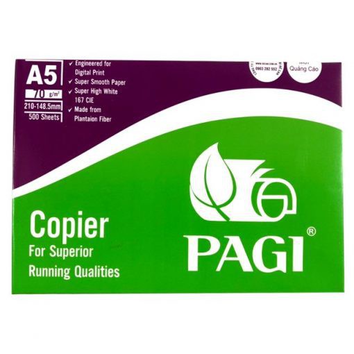 Giấy In A5 Pagi Định Lượng 70mgs ,Độ Trắng 90,Đóng Gói 500 tờ/ram