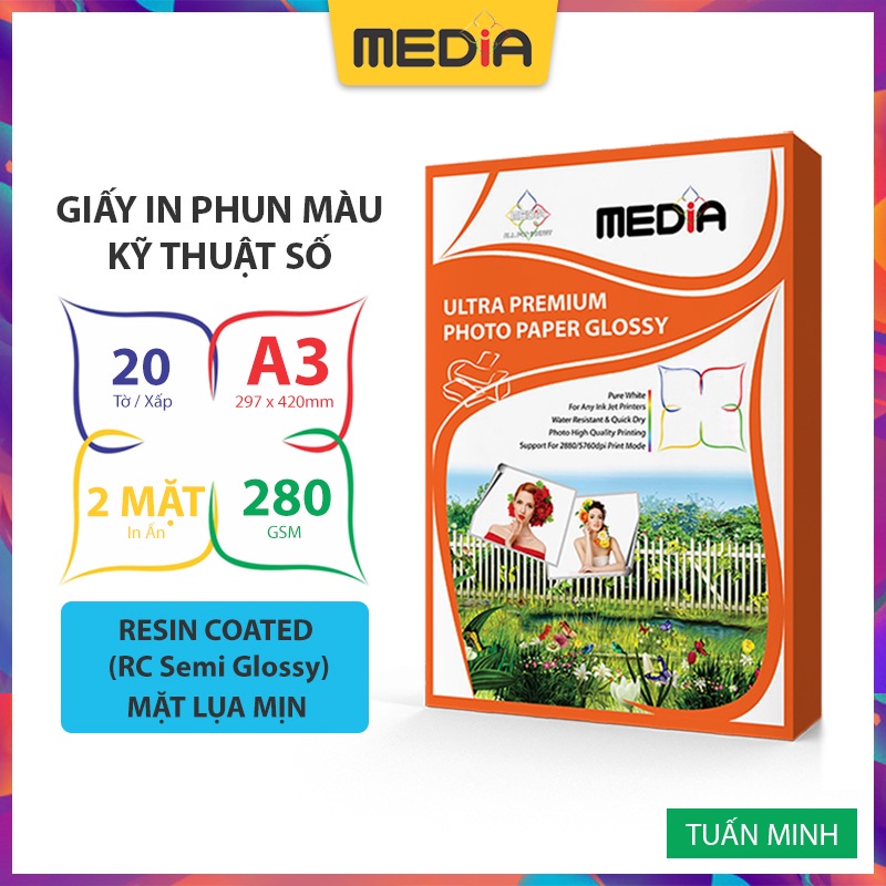 Văn Phòng Phẩm > Sổ & Giấy Các Loại > Giấy In || Giấy In Phun Màu Media Inkjet 2 Mặt Lụa Mịn (Resin Coated Semi Glossy), A3 280gsm 20 Tờ, Dùng Cho Tất Cả Máy In Phun MàuCòn hàng