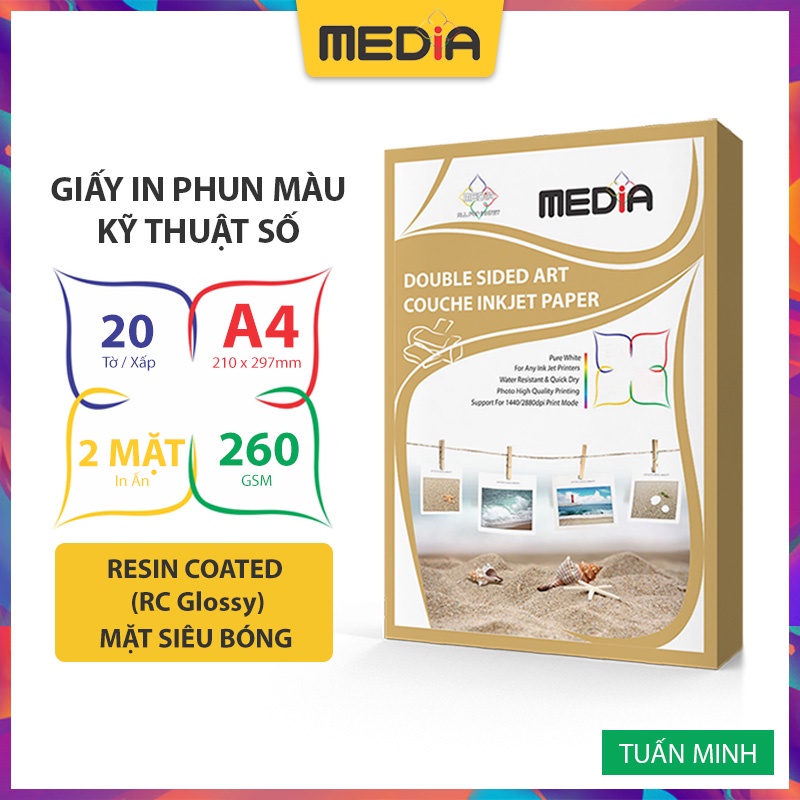 Giới thiệu Giấy In Phun Màu Media Inkjet 2 Mặt Siêu Bóng (Resin Coated Glossy), A4 260gsm 20 Tờ, Dùng Cho Tất Cả Máy In Phun Màu