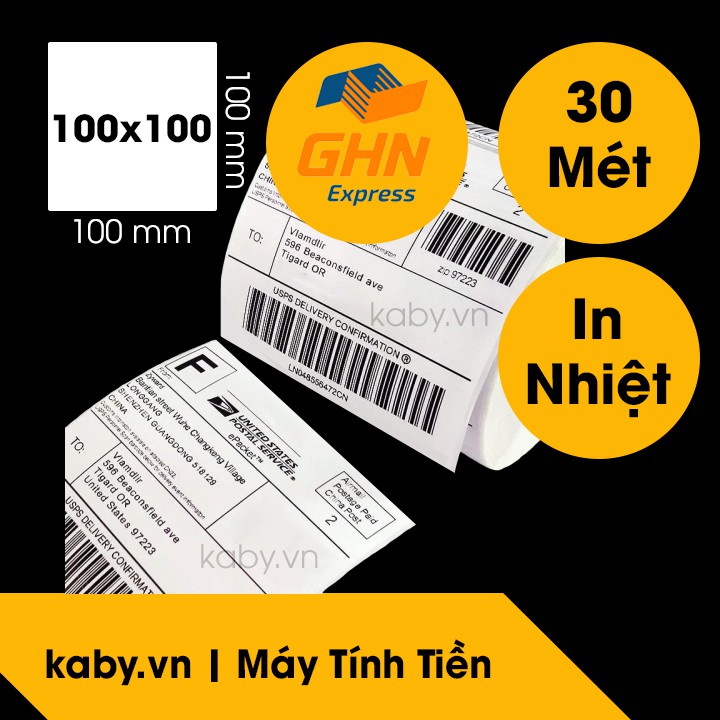 Giấy In Tem 100x100 mm (Cuộn 500 Tem) - Decal Nhiệt - Giấy In Mã Vạch Giao Hàng Nhanh GHN🎁 Giảm 70K phí vận chuyển cho đơn hàng từ 300K