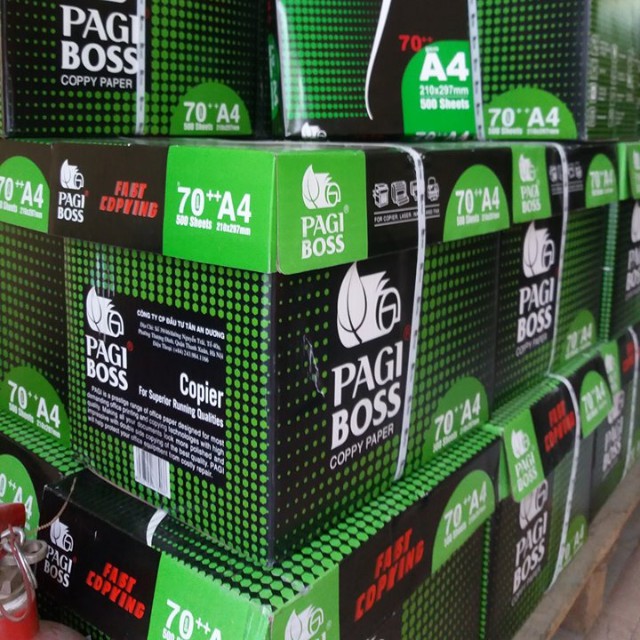 - PAGI BOSS là loại giấy có độ trắng cao, mặt giấy láng và rất mịn in hai mặt mà không bị nhăn và lem mực,sắc nét cao, không bụi, khổ giấy chuẩn tuyệt đối chính xác, in 2 mặt không bị kẹt giấy, cho phép in, photocopy ra những văn bản, hình ảnh đẹp.