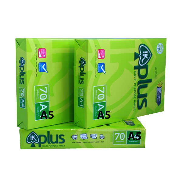 - Giấy in IK Plus A5 70gsm là loại giấy phổ biến đối với hoạt động in ấn tại nhà và văn phòng, nhất là khi in, photo các loại tài liệu học tập, hội họp, đơn từ.