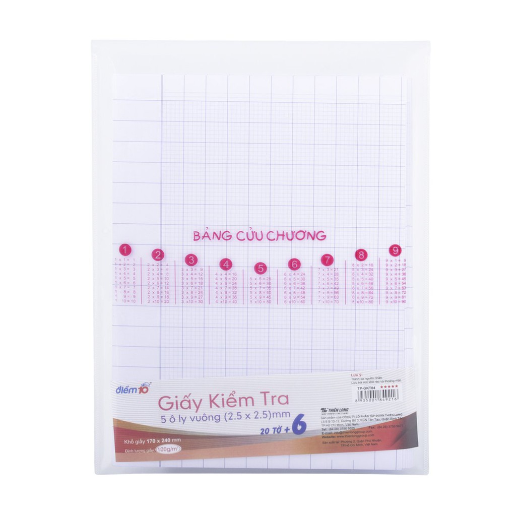 Giới thiệu Giấy kiểm tra Điểm 10 TP-GKT04 5 ô ly vuông