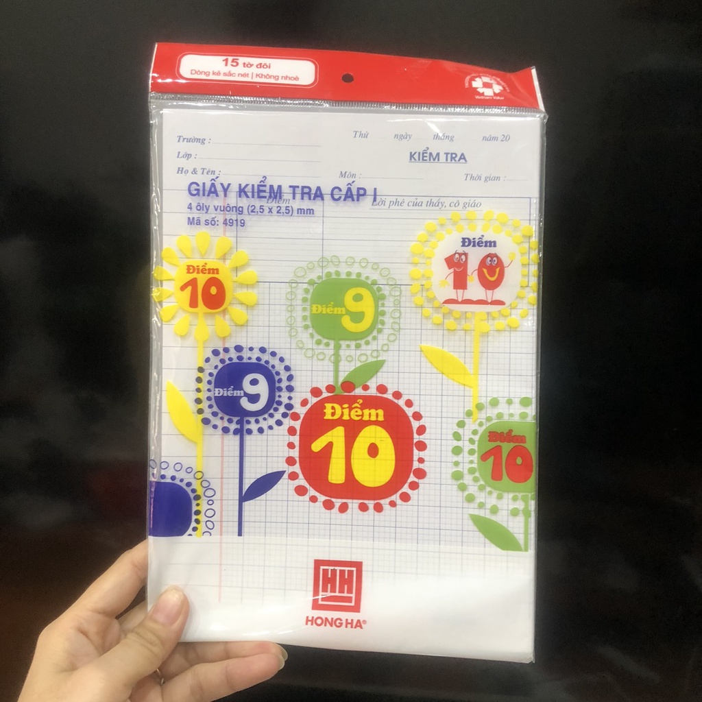 Giấy kiểm tra cấp 1 điểm 10 một sản phẩm của Hồng Hàng, Hàng chất lượng cao, rất ưa chuộng trên thị trường hiện nay. Đặc biệt là học sinh tiểu học thường xuyên phải dùng.