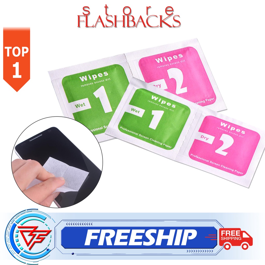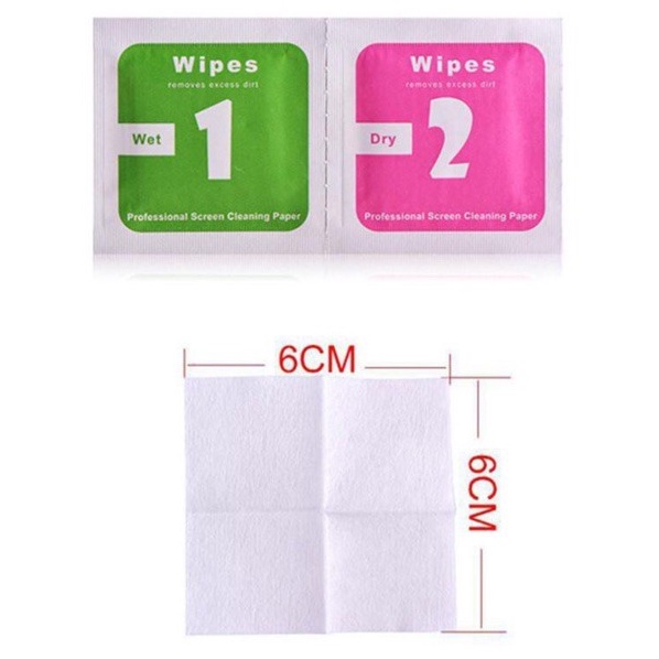 Giấy Lau 1 WET - 2 Dry Cho Kính Cường Lực Các Dòng Điện Thoại 6/6s/7/7plus/8/8plus/plus/x/xr/xs/11/12/pro/max/Androi