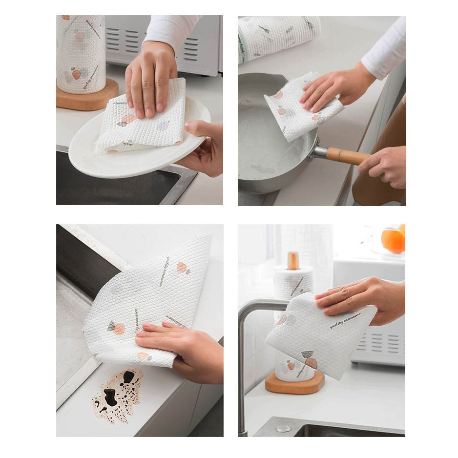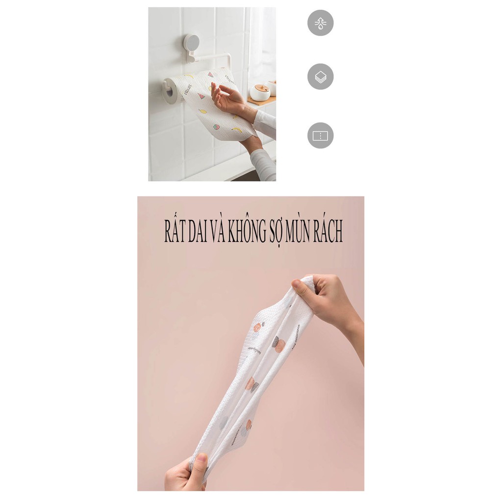 Giấy vải lau đa năng giúp bạn dễ dàng lau chùi các vật dụng trong gia đìnhChất liệu 30% Viscose, 70% Polyester, mềm mại, co giãn tốt, không bị nhăn và dễ thấm hút nước.