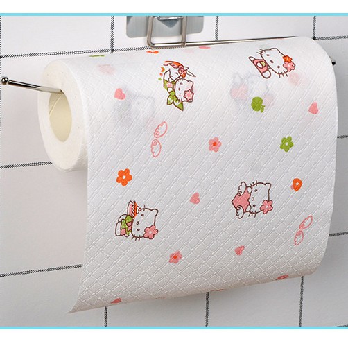-Màu sắc :trắng, họa tiết mèo hello kitty-Được làm từ chất liệu giấy dai, mềm mịn, có thể dùng lai nhiều bề mặt mà không rách khi gặp nước