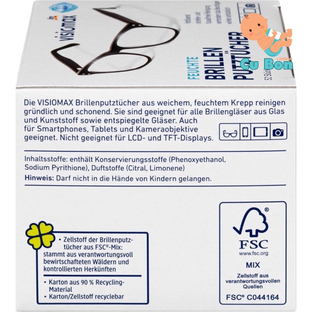Giới thiệu Giấy lau kính, bờ mặt điện thoại, laptop, tivi, máy ảnh Visiomax giúp làm sạch và bảo vệ kính, hộp 52 cái của Đức