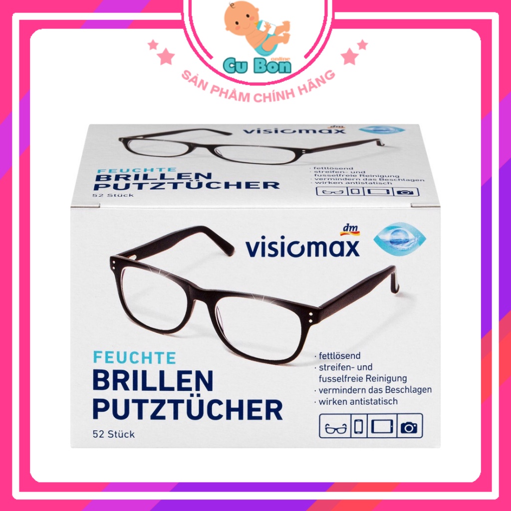 Giấy lau kính, bờ mặt điện thoại, laptop, tivi, máy ảnh Visiomax giúp làm sạch và bảo vệ kính, hộp 52 cái của Đức