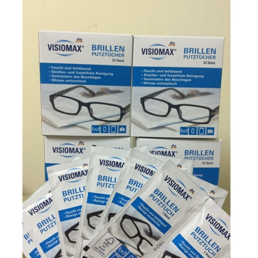 - Giấy lau kính Visiomax giúp làm sạch bụi bẩn,nhờn, mồ hôi trên tất cả các loại mắt kính.