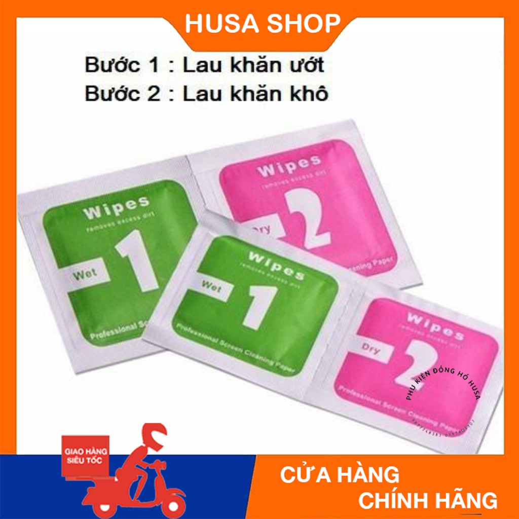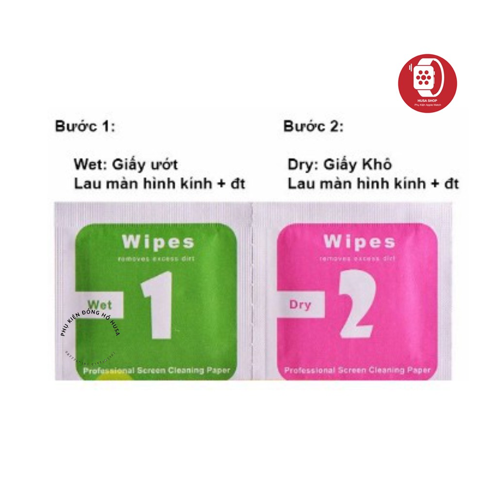 💥Thông tin sản phẩm: Giấy Lau Màn Hình Cho Apple Watch và Điện Thoại- Sản phẩm giấy lau màn hình gồm hai phần: lau ướt (wet) và lau khô (dry)