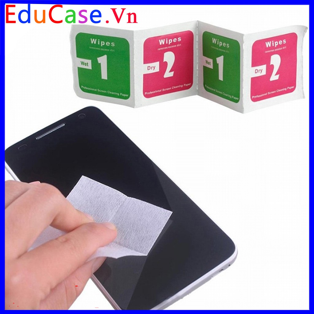 Giới thiệu Giấy lau màn hình điện thoại ,ipad, kính, máy tính bảng ,1 miếng lau ướt +1 miếng lau khô Educase.vn