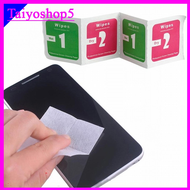 Shop Taiyoshop 5 kính chào quý kháchGiấy lau màn hình điện thoại ,ipad, kính, máy tính bảng ,1 miếng lau ướt +1 miếng lau khô taiyoshop5