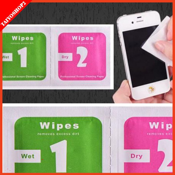 Điện Thoại & Phụ Kiện > Phụ kiện > Khác || Giấy lau màn hình điện thoại ,ipad, kính, máy tính bảng ,1 miếng lau ướt +1 miếng lau khô,giấy lau cồn taiyoshop2Còn hàng