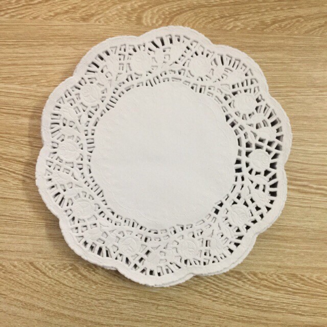 Giấy lót bánh ren hoa chuyên dùng lót bánh, trang trí bánh ngọt, mặn. Các loại bánh cần độ sang trọng, vệ sinh như bánh pizza, bánh sinh nhật, gà rán.v.v…Giấy lót bánh round white paper doilies cho đồ ăn nhanh: bánh donut, khoai chiên, nem chua rán, xúc xích, gà chiên, phomai que.v.v…