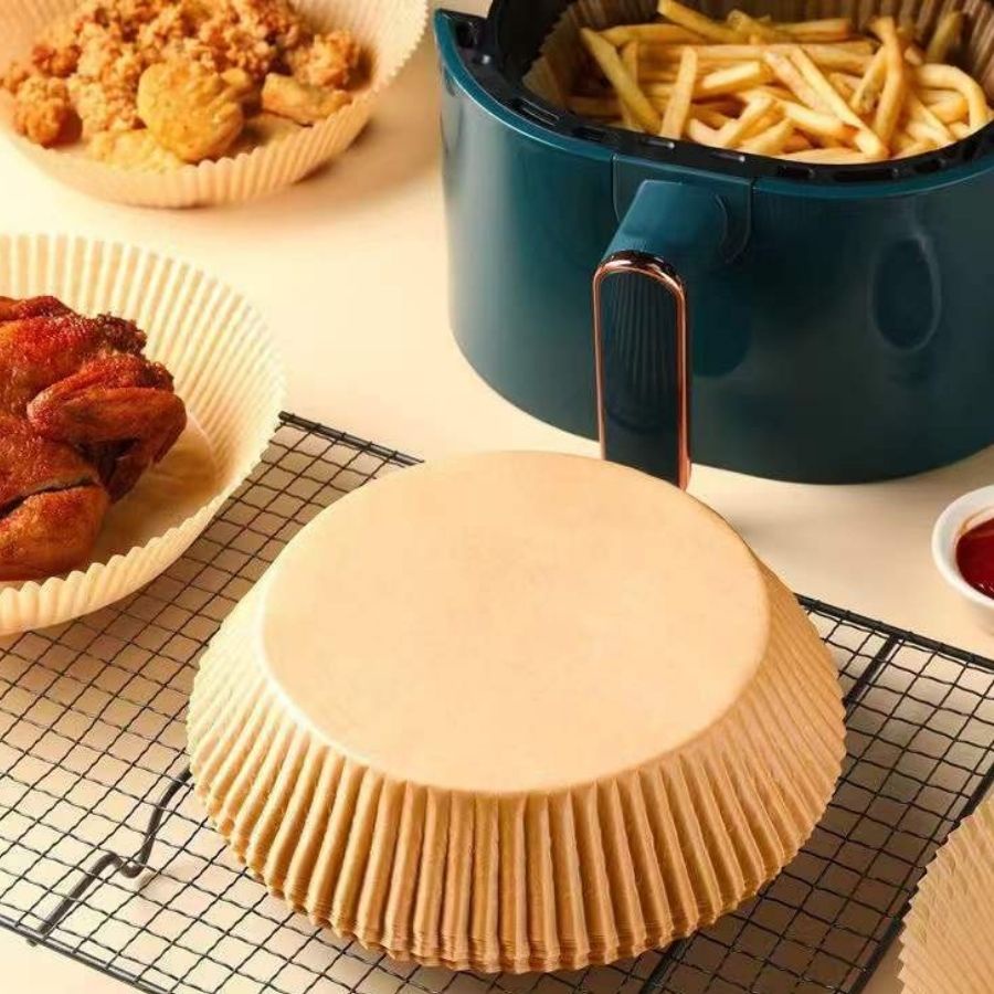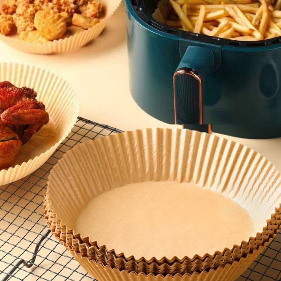 - Gấy lót nồi chiên không dầu chống thấm dầu dùng một lần này được làm bằng giấy nến da, là chất liệu chống thấm nước và chống dầu mỡ.