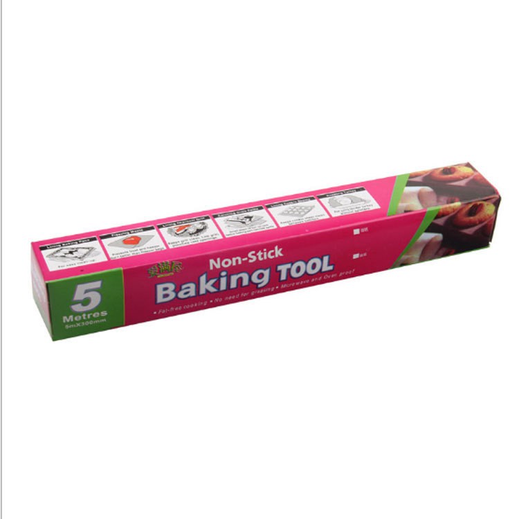 Giấy có tác dụng chống dính khi dùng trong lò nướng, lò vi sóng, lót đáy khuôn, thành khuôn, bảo quản đồ ăn. Mỗi cuộn giấy đi kèm với hộp bao ngoài và phần răng cưa giúp cắt giấy dễ dàng
