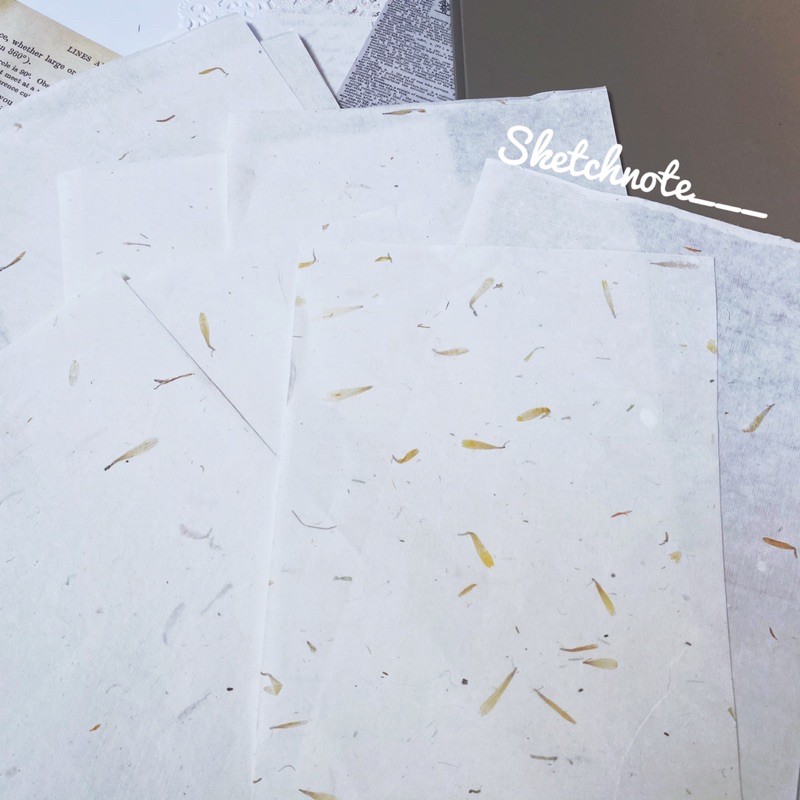 Set giấy lụa được ép những mẩu lá nhỏ hay những cánh hoa hay sợi chỉ nhỏ màu sắc lên bề mặt giấy lụaMỗi set có 10 tờ size A4 ❤️