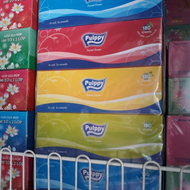 👌👌Khăn lụa hộp cao cấp pulppy được làm từ chất liệu bột giấy cao cấp, an toàn khi sử dụng và đảm bảo vệ sinh.👉Đóng gói: hộp 180 tờ x 2 lớp.