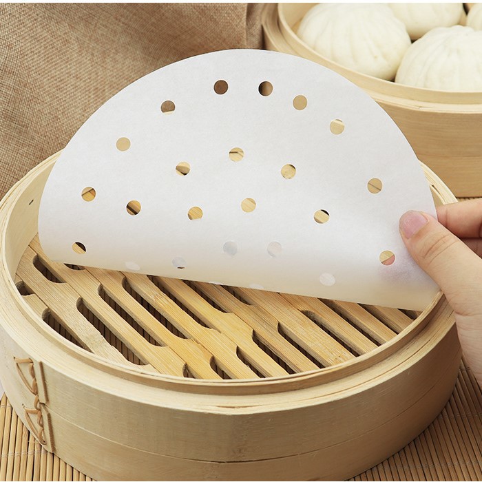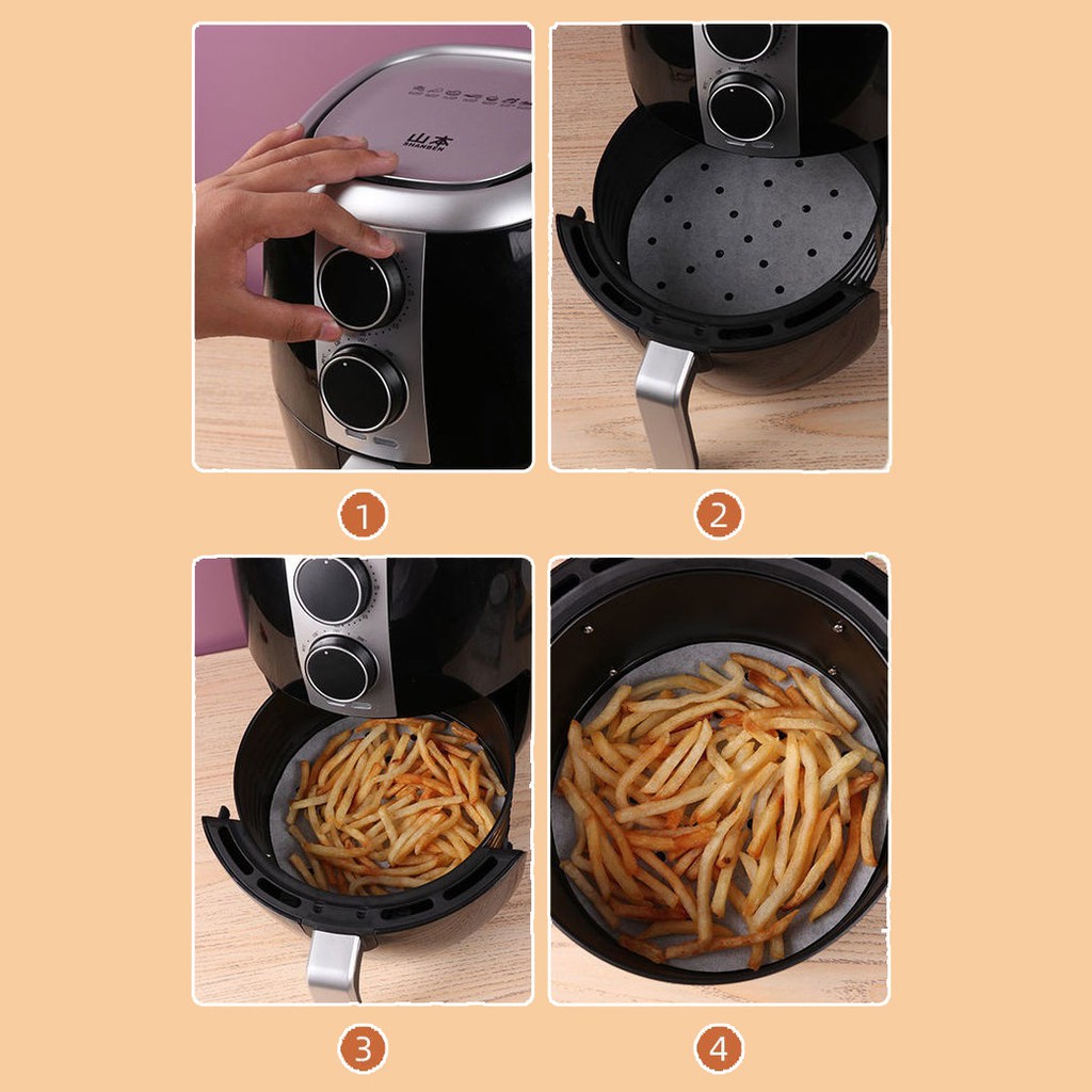 Giới thiệu Giấy Nến Cho Nồi Chiên Không Dầu Đục Lỗ Set 100 Tờ Tròn 23cm Chống Dính Lót Bánh Bao